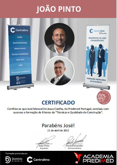 O curso de Técnicas e Qualidade de Construção faculta ao agente imobiliário conhecimento suficiente para fundamentar e justificar o enquadramento do imóvel no mercado aquando a sua angariação, assim como, permite apresentar ao proprietário ou ao potencial cliente as diferentes soluções para a valorização do imóvel e solução de patologias.