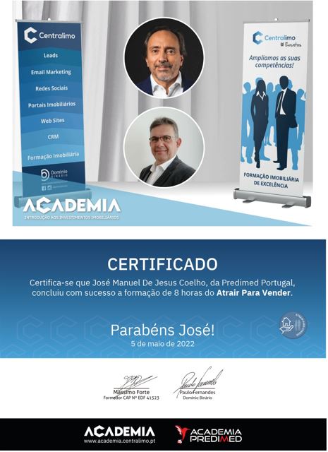 São formações em diversas áreas temáticas (Mediação Imobiliária, Fotografia Imobiliária, Marketing Digital, Marketing Imobiliário, Direito Imobiliário, Fiscalidade Imobiliária, Avaliação Imobiliária, Investimento Imobiliário, Financiamento Imobiliário, Desenvolvimento Pessoal).